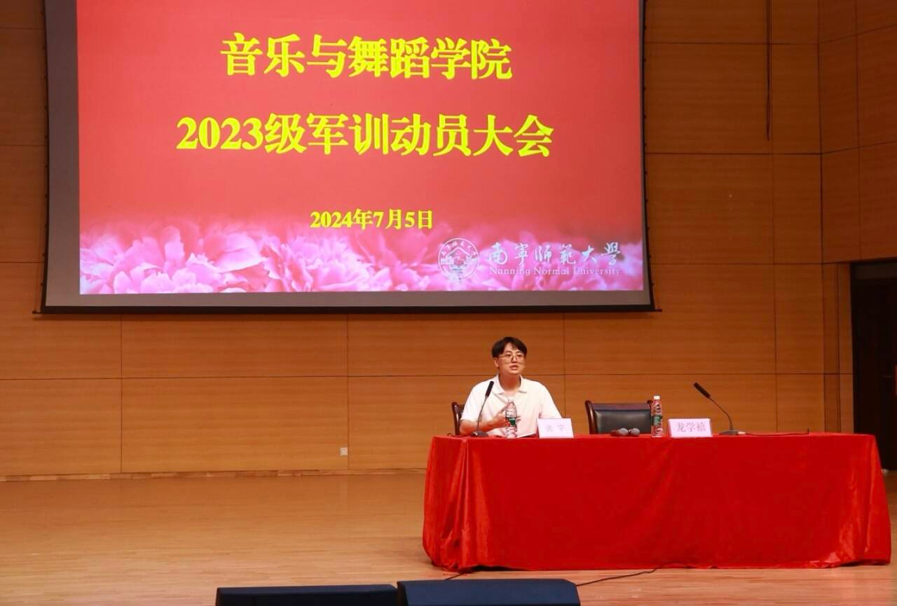 2024 年 7 月 5 日,必赢3003no1线路检测中心在音舞楼小音乐厅开展2023级学生军训动员大会, 出席本次会议的领导老师有学院党委副书记龙学禧和辅导员张宇老师,以及2023级班主任和2023级全体参训学生。