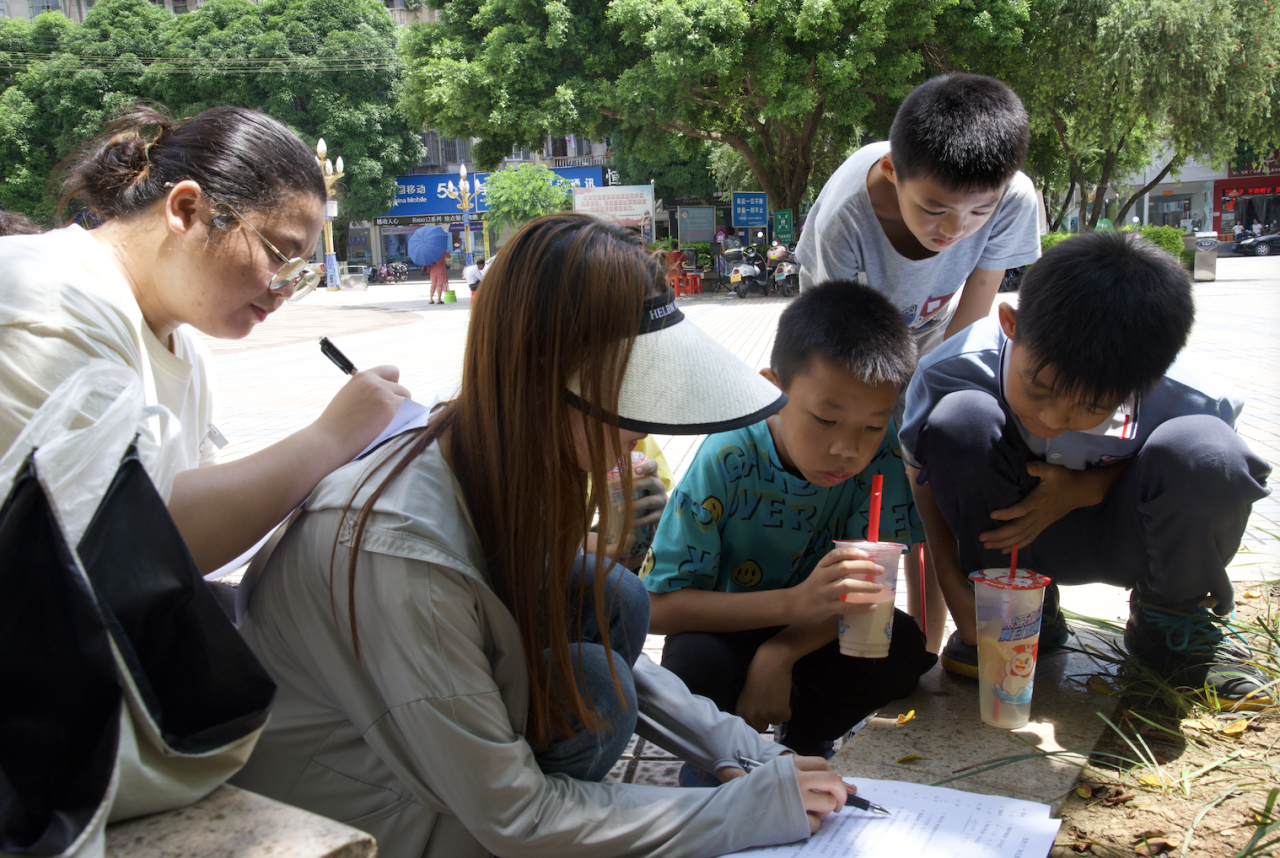 活动第一天,志愿者们深入到武鸣区文化中心广场,展开了关于“武鸣城厢镇儿童对广西民族音乐的了解与认同”的问卷调研。在活动过程中,团队与当地儿童、居民针对问卷中的问题进行了广泛的交流与调研。通过问卷调查、访谈等形式,了解他们对于广西民族音乐的认识、喜爱以及参与学习的意愿等,收集有效问卷100份。初步调研结果显示,大多数儿童和家长对于民族音乐有着一定的了解和兴趣,也有意愿让孩子参与线下或线上学习与传承,但也存在一些认识局限。针对这一情况,“三下乡”团队在接下来的志愿服务中将通过多种形式加强民族音乐的教育和推广,提高民众对民族音乐的认知和欣赏水平。调研将持续至7月7日,计划问卷数量300份,并最终形成调研报告。