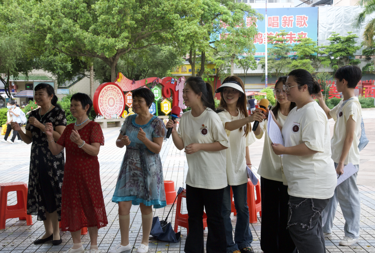 此外,志愿者们加入到市民的娱乐活动当中,与市民一起跳舞、唱歌。调研之余,拉近了彼此的距离。“三下乡”团队将根据最终调研数据分析,制定更加针对性的广西民族音乐教学计划和推广策略,为传承和发展中华优秀传统文化贡献力量。