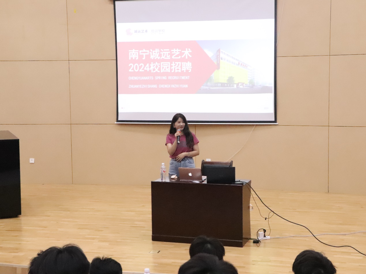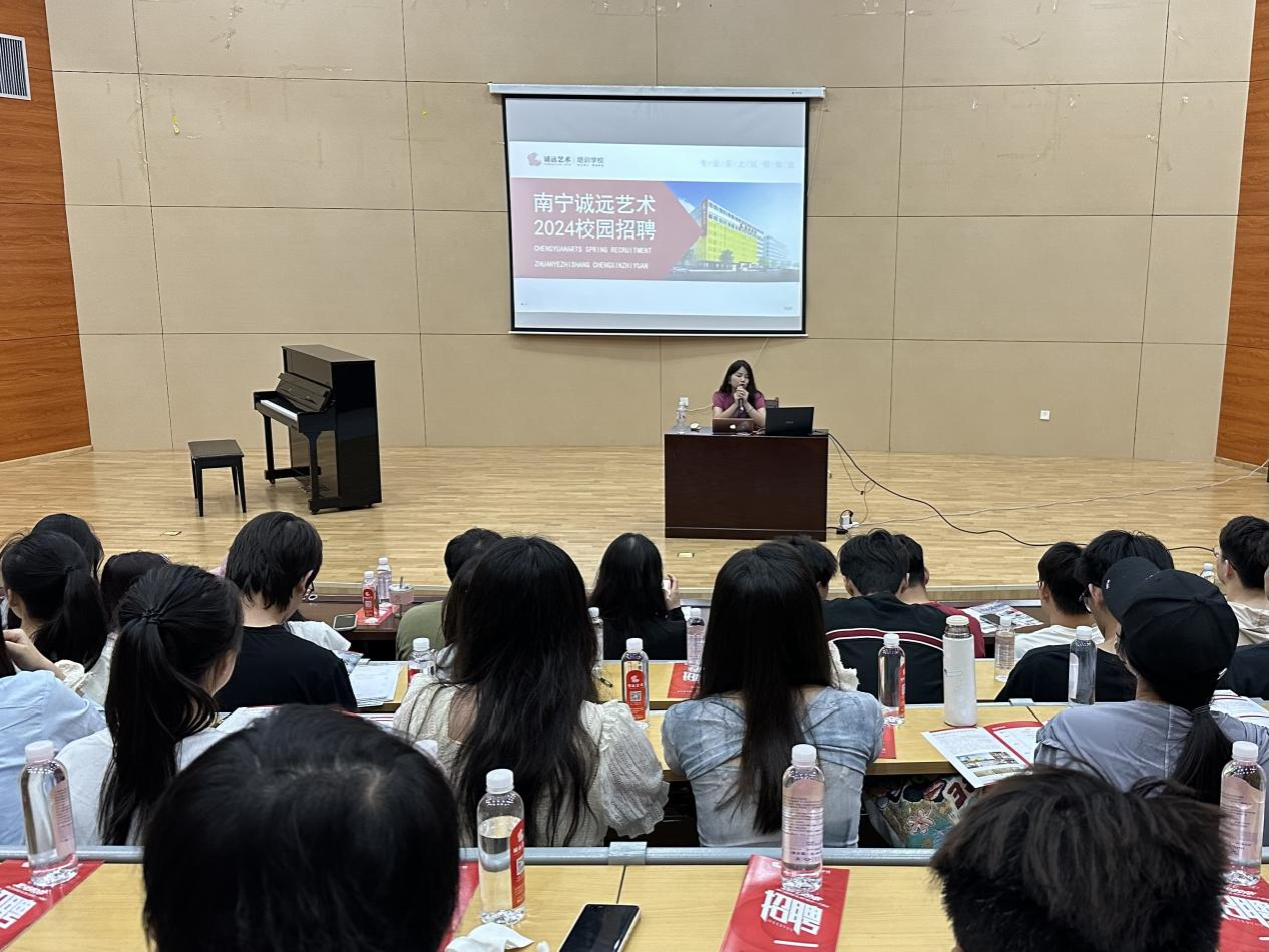南宁诚远艺术培训学校专场招聘会于5月17日在音舞楼A1009教室顺利举行,必赢3003no1线路检测中心党委副书记龙学禧亲临本次会议并作出指导。共有100多名必赢3003no1线路检测中心和美术与设计学院的学生参加本次招聘会。