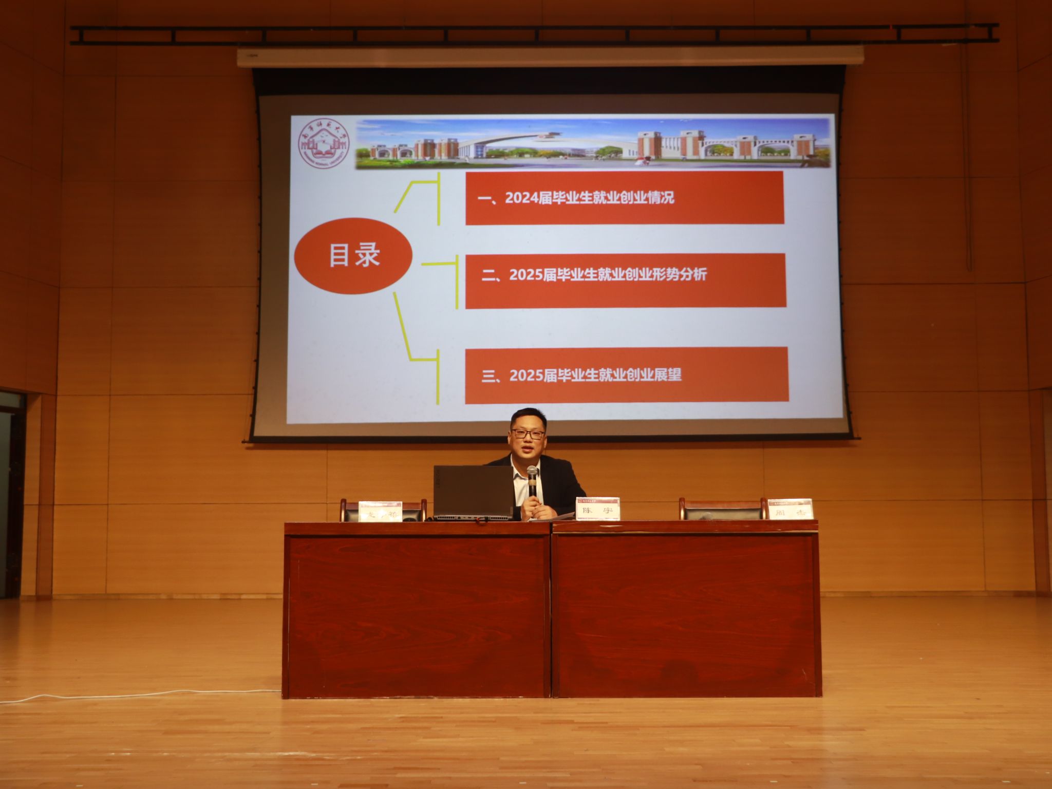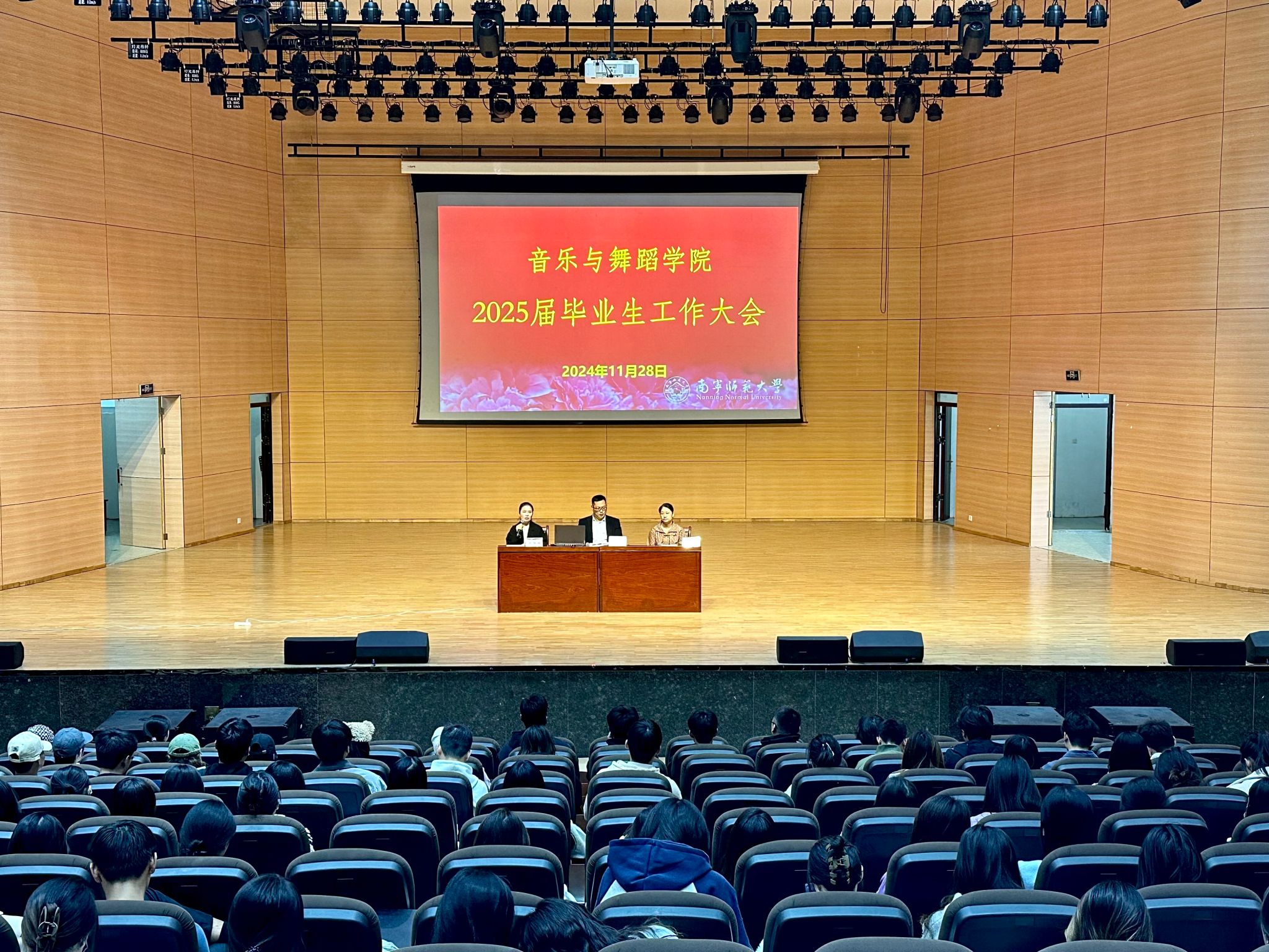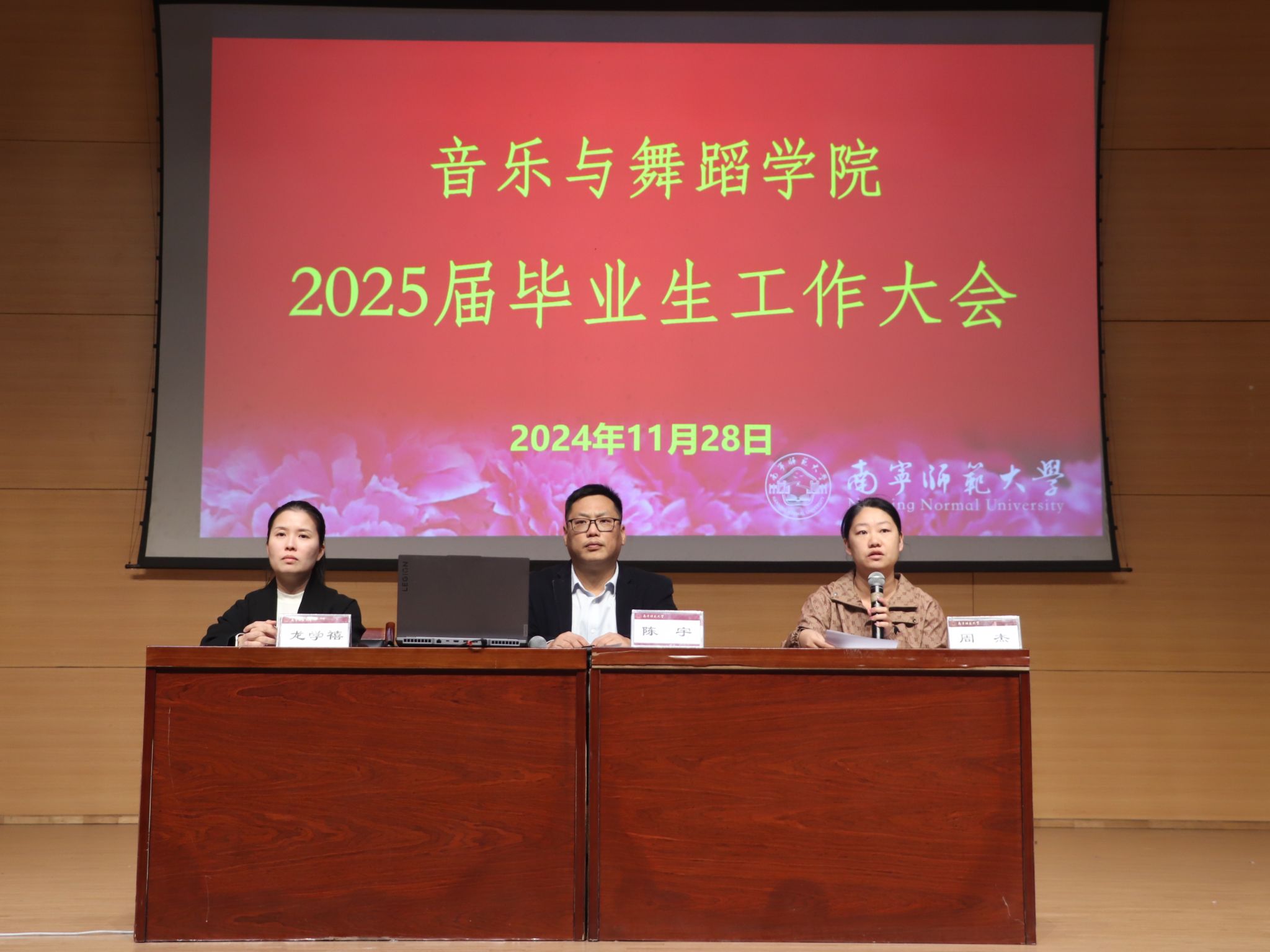 2024年11月28日,必赢3003no1线路检测中心在音舞楼二号音乐厅召开了2025届毕业生工作大会。学院党委书记陈宇、副书记龙学禧、副院长周杰、毕业班辅导员、毕业生班主任以及全体2025届毕业生参加了会议。会议由学院党委龙学禧副书记主持,