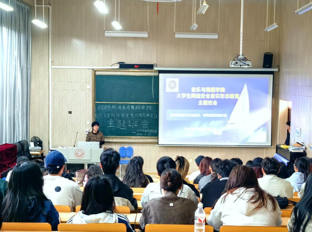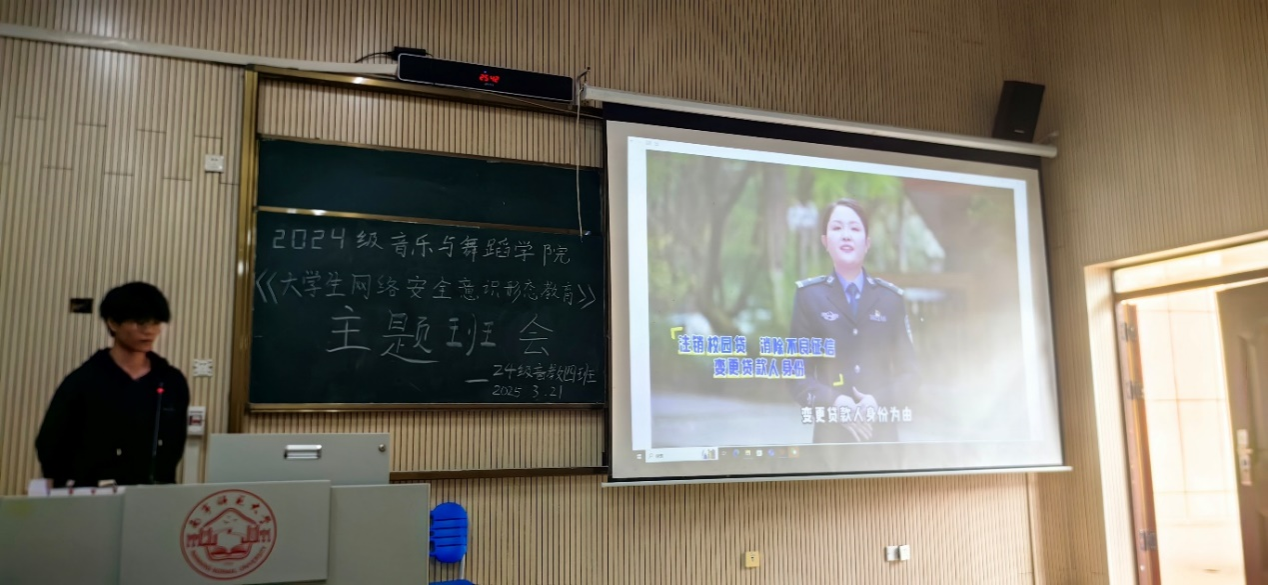 3月21日,必赢3003no1线路检测中心音乐教育专业2024级4班在音舞楼A1001教室举办主题为“网络安全教育”的班会活动。此次班会旨在提高同学们对网络安全的认识,防范电信网络诈骗。