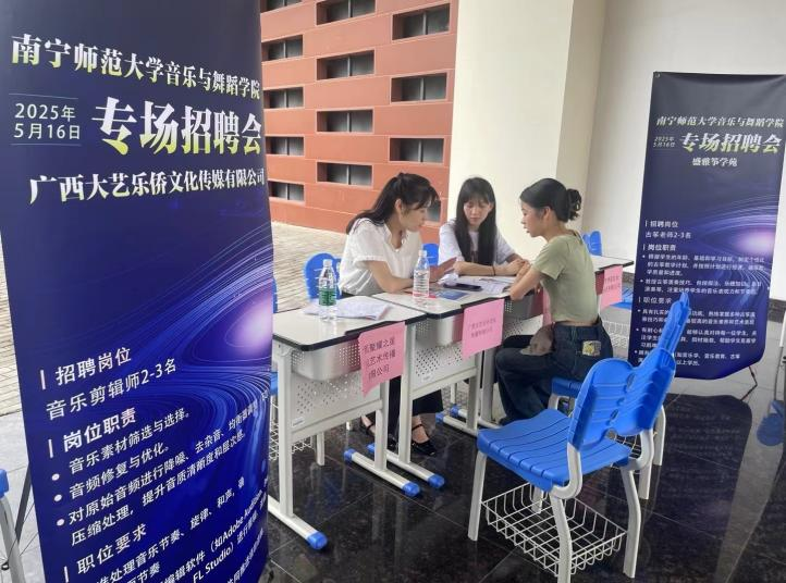 此次招聘会吸引了众多用人单位参与,宁波丝绸之路艺术团、广西大艺乐侨文化传媒有限公司、广西凝山科技有限公司、广西盟大海绵教育咨询有限公司、广西悦臻善商贸有限责任公司等多家区内外企业带来了丰富多样的就业岗位,涵盖音乐、舞蹈、新媒体运营、文秘、销售等多个专业领域,为毕业生提供了广泛的职业选择。招聘会现场气氛热烈,毕业生们手持精心准备的简历,积极与用人单位交流,了解企业情况和岗位要求;用人单位也热情地向毕业生介绍企业发展前景、岗位待遇等情况。据统计,招聘会吸引超150名毕业生参与并向用人单位投递个人简历。下一步,学院将做好毕业生的思想教育,促使毕业生顺利签约入岗。