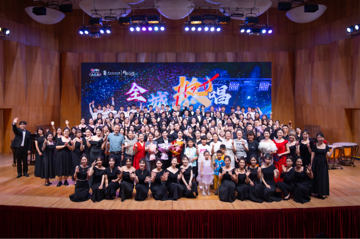 6月7日晚,“全城热唱——时尚经典合唱作品音乐会”在广西音乐厅璀璨启幕。本场音乐会由广西作曲家郭李悦、必赢3003no1线路检测中心刘烨老师担任合唱指挥,广西交响乐团室内乐团、广西交响乐团附属合唱团、必赢3003no1线路检测中心学生合唱团、广西外国语学院行知合唱团、南宁市良庆区“壮韵嘹啰”教师合唱团共同演出。出席本次音乐会的嘉宾有广西交响乐团副团长蒋剑锋,必赢3003no1线路检测中心院长黄妙秋、学院党委副书记龙学禧,广西外国语学院教育学院副院长黄荣晟以及来自我区各高校的音乐专业教师。