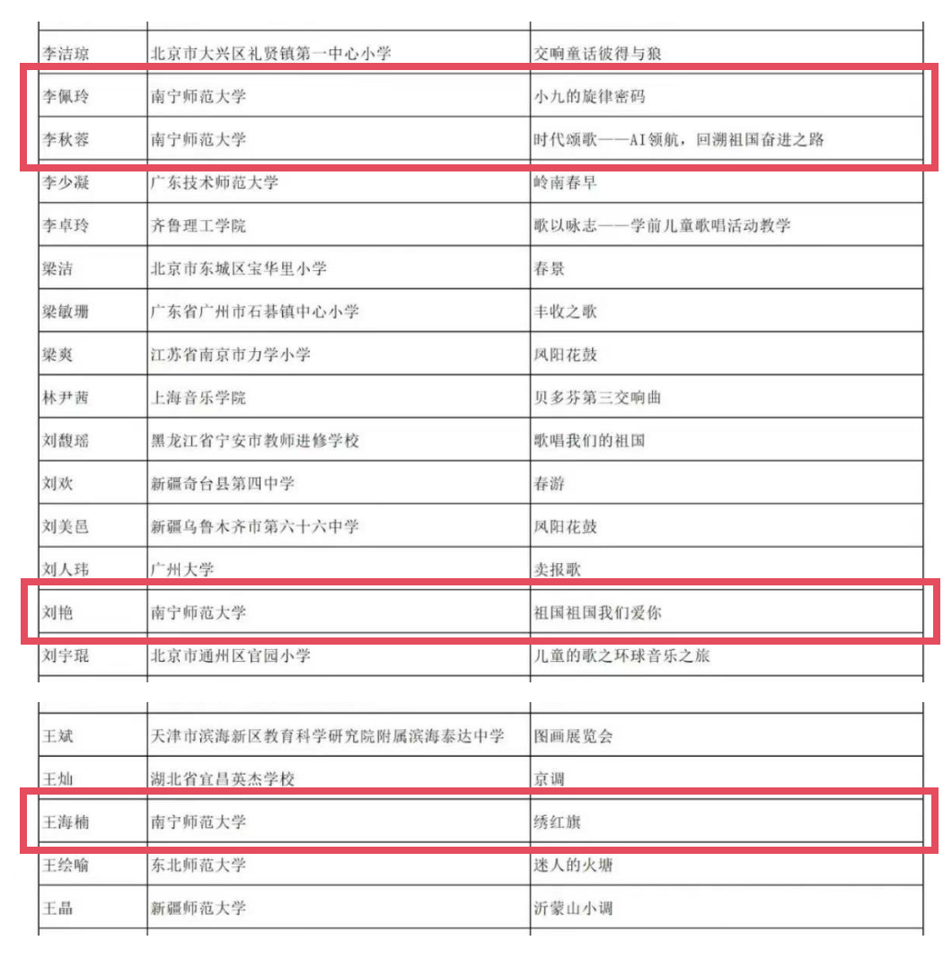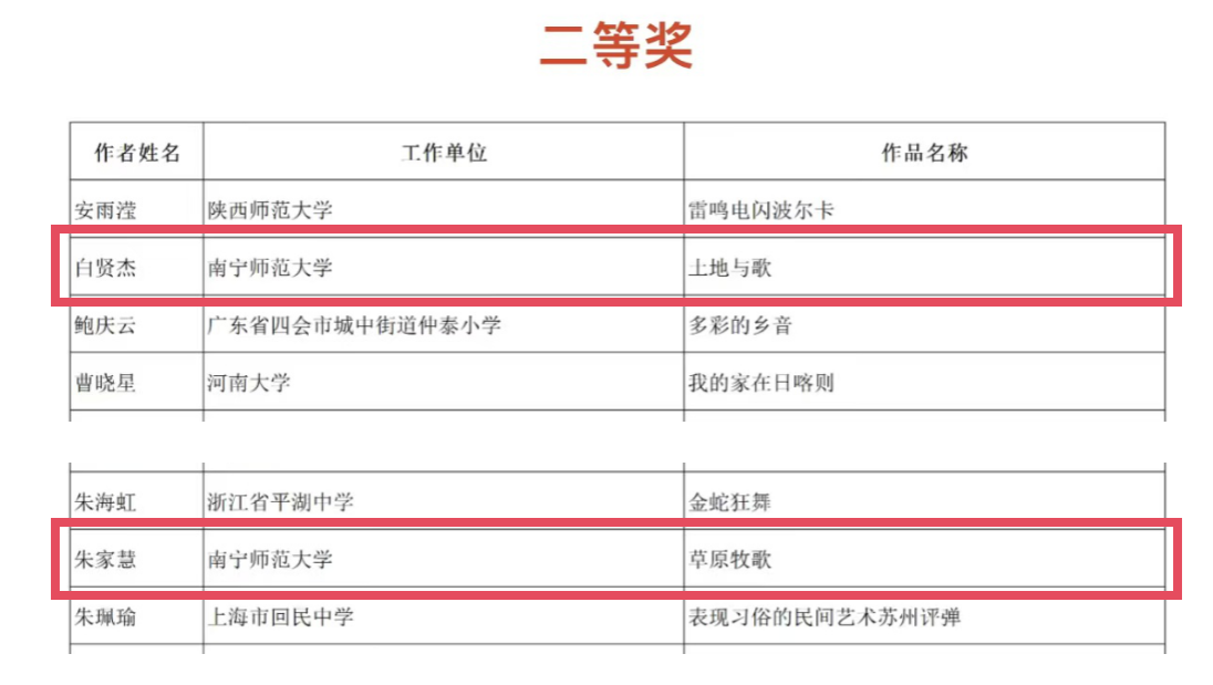 近期,在人民音乐出版社《中国音乐教育》杂志社、中国乐器协会及国民音乐教育大会组委会联合主办的“万叶杯”论文(教案)征集评选活动中,必赢3003no1线路检测中心研究生学子在黄妙秋教授的精心指导下,表现优异,学科教学(音乐)专业的陈嘉慧、郭威、王海楠、李秋蓉和音乐教育专业的刘艳、李佩玲6人荣获一等奖,学科教学(音乐)专业的白贤杰、朱家慧共2人荣获二等奖。这是我校首次斩获“万叶杯”全国教案评选一等奖,且一等奖获奖人数位列全国同类高校前茅。