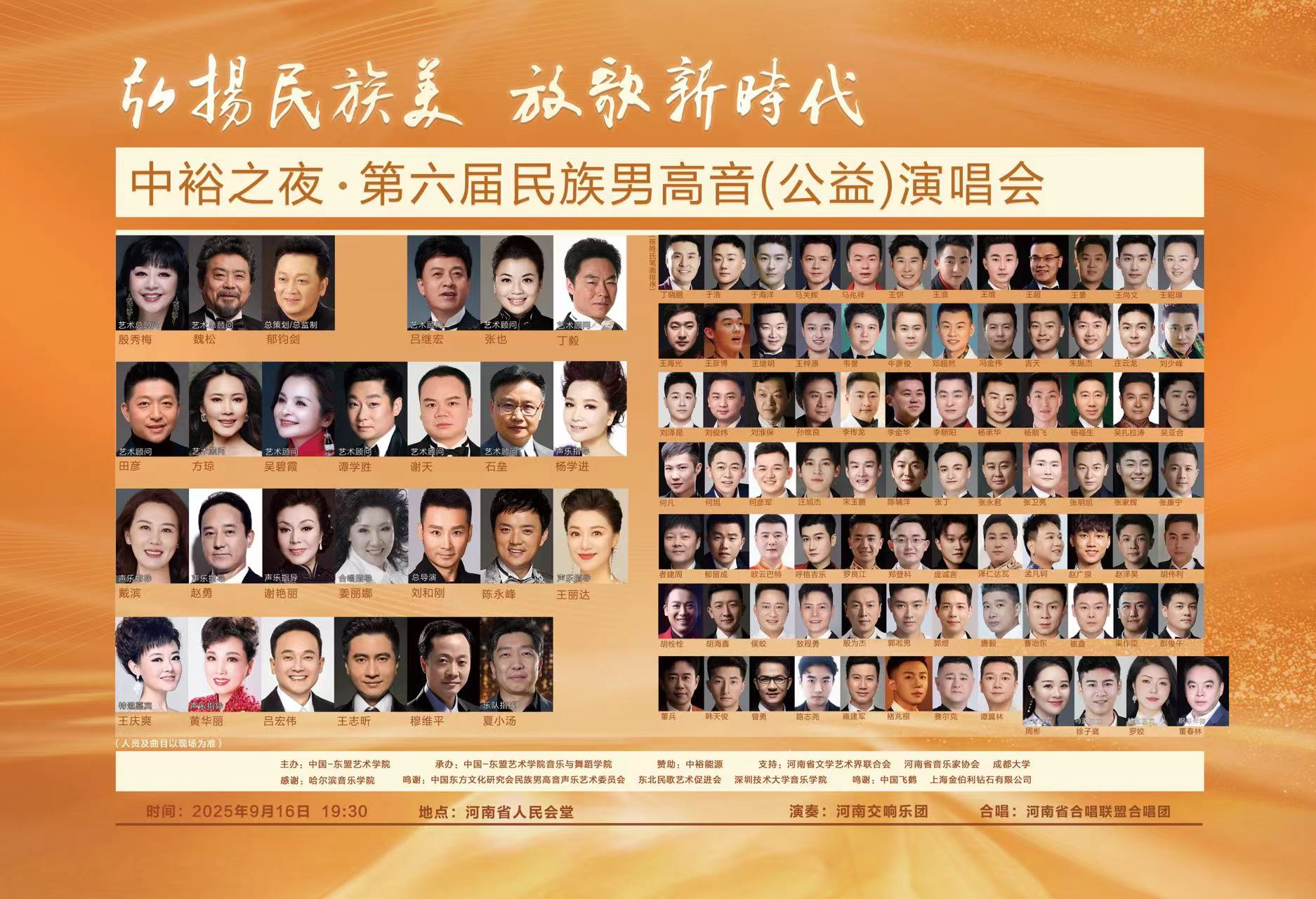 2025年9月16日,由中国-东盟艺术学院主办,河南省文联、河南省音乐家协会支持“弘扬民族美,放歌新时代——中裕之夜・第六届民族男高音公益演唱会”在河南省人民大会堂举行。必赢3003no1线路检测中心党委委员、院长助理刘俊纬副教授受邀参加演出。