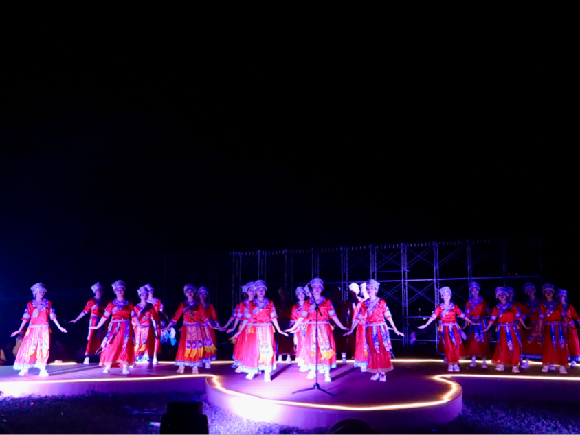 在学院辅导员张宇老师带领下,安排了70多个精彩纷呈的节目,持续为期四天的演出。演出中,大合唱《苗家酒情》,小组唱《广西尼的呀》、《山歌好比春江水》、《锦绣壮乡》、《酒歌》,独唱《客到家》,群舞《孔雀舞》等节目展现了浓厚的民族特色,独舞《光》通过优美的舞姿和动人的音乐,传递出对人们美好生活的向往和追求,乐队流行歌曲联唱,将气氛带入高潮,赢得年轻朋友们的欢呼喝彩。这些节目的精心编排和精湛演出,展示了我院学子的才华和热情,给观众留下了深刻的印象和别样的民族节日体验,赢得了观众们热烈的掌声和赞誉。
