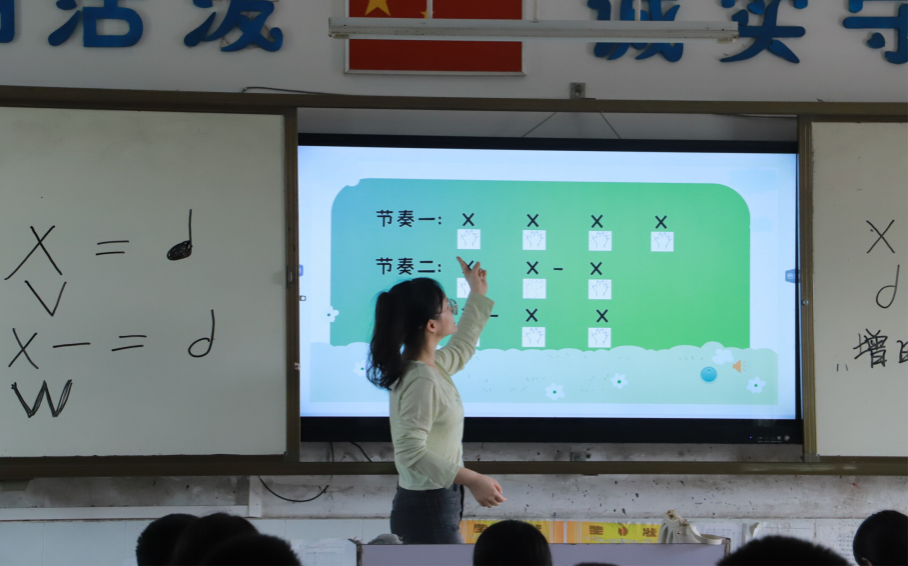 志愿者们根据学生年龄特点和兴趣爱好设计了一系列富有创意和趣味性的教学内容。教学分为三个环节,第一环节:音乐知识讲解。教学志愿者通过PPT展示音乐的构成要素、乐器分类以及音乐在不同文化中的表现形式等。部分教学志愿者亲自演奏了擅长的乐器,如:钢琴、竹笛、吉他等,让学生感受相应乐器的音色和演奏技巧。第二环节:音乐技能展示。为了让学生更加直观地了解音乐技能,教学志愿者们准备了精彩的技能展示环节。分别展示了部分乐器的演奏技巧或歌曲的演唱技巧,教授了简单的节奏感和旋律感训练方法。学生们聚精会神地观看,不时发出惊叹和掌声。第三环节:游戏互动环节。为了更好地融入音乐课堂,志愿者们设计了一系列有趣的音乐互动游戏。例如,“音乐接龙”游戏,学生需要按照规定的节奏和旋律接唱歌曲,锻炼了他们的音乐感知能力和协作精神,同学们在游戏中欢笑嬉戏,乐在其中。