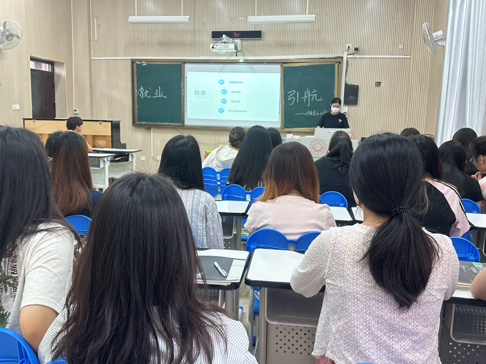 活动开始,学院就业引航员李宇曼向同学们分析了当前就业的形势,介绍了就业信息和渠道,并强调了就业准备和树立正确就业观的重要性。其次,引航员讲解了就业主要方向的选择,即学生可选择自主创业、艺术培训机构、中小学、选调生、西部计划等多种就业口径,并通过校招、招聘会、企业官网等渠道获取信息。接着向大家介绍了就业需要准备的专业知识,技能和考试面试准备等,同时要应对职业测试、笔试和面试等考核需要注意的事项。最后,引航员再次鼓励同学们树立正确的就业观,先就业再择业,理性对待竞争,不断提高自身职业技能,积极面对困难和挑战。