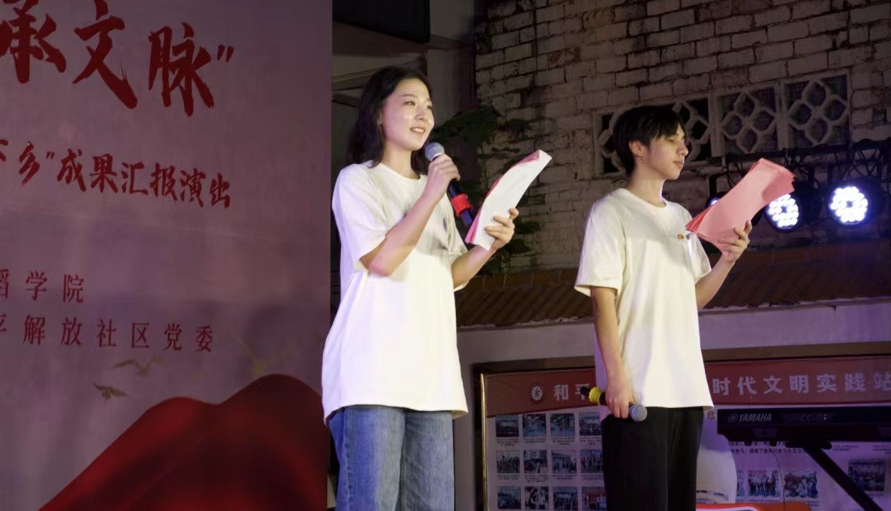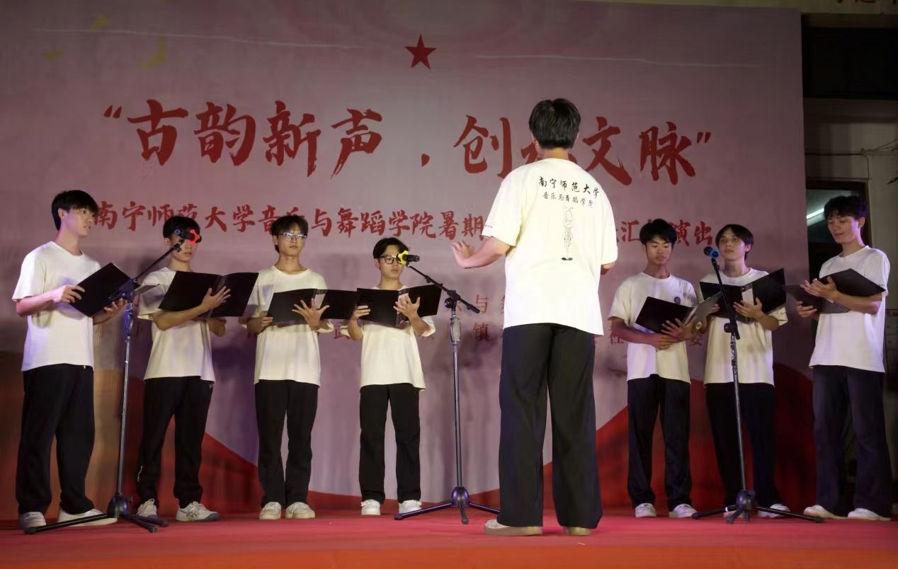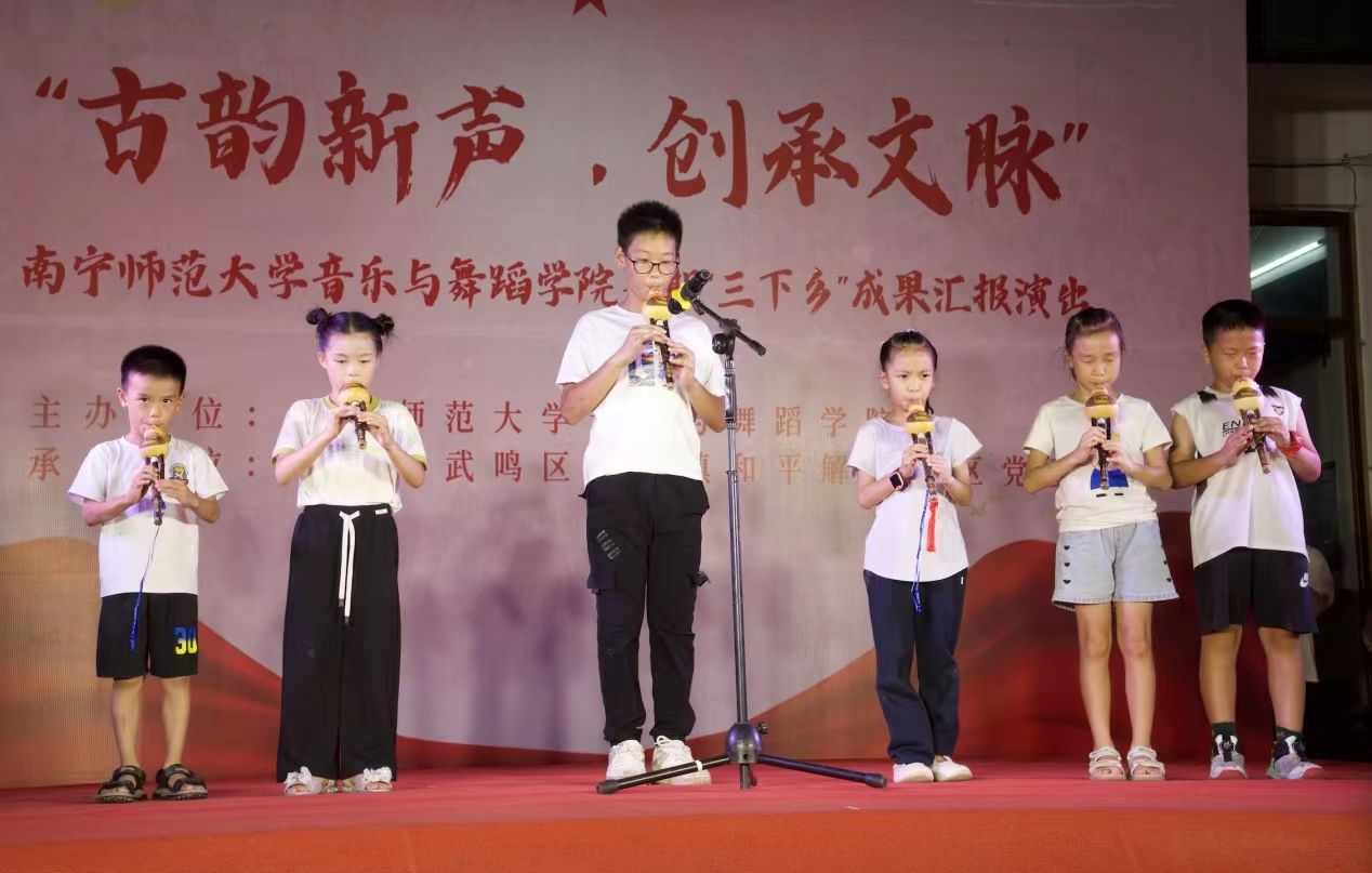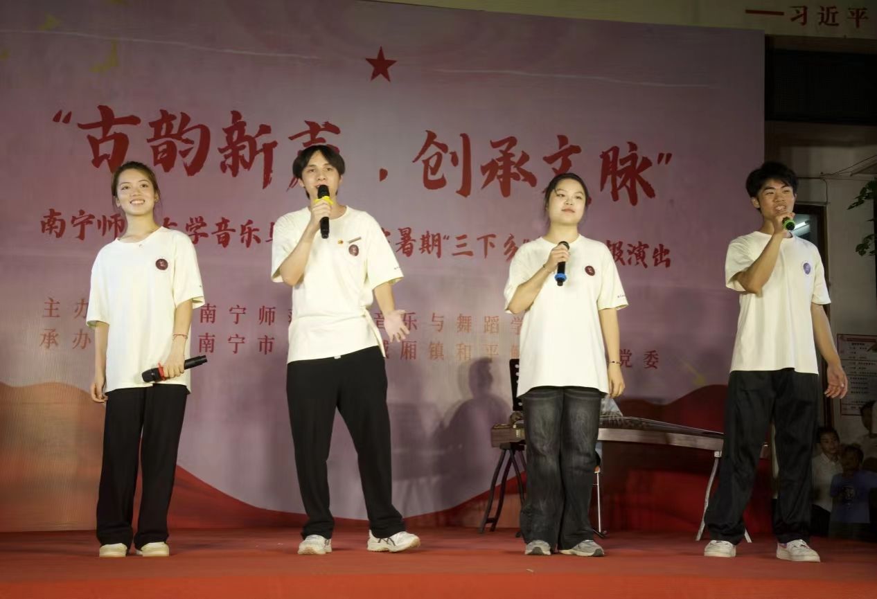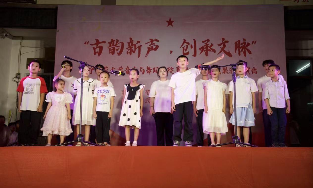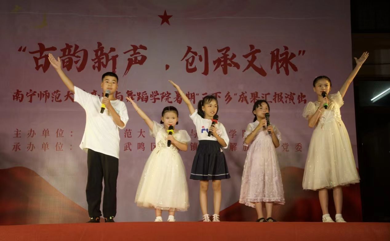 7月12日,“古韵新声,创承文脉”必赢3003no1线路检测中心暑期“三下乡”教学成果汇报演出正式开始!本场演出由必赢3003no1线路检测中心主办,中共南宁市武鸣区城厢镇和平解放社区委员会承办。参加晚会的嘉宾有和平解放社区党委张健书记、和平解放社区卢彩婷副主任、社区居民和小朋友们。