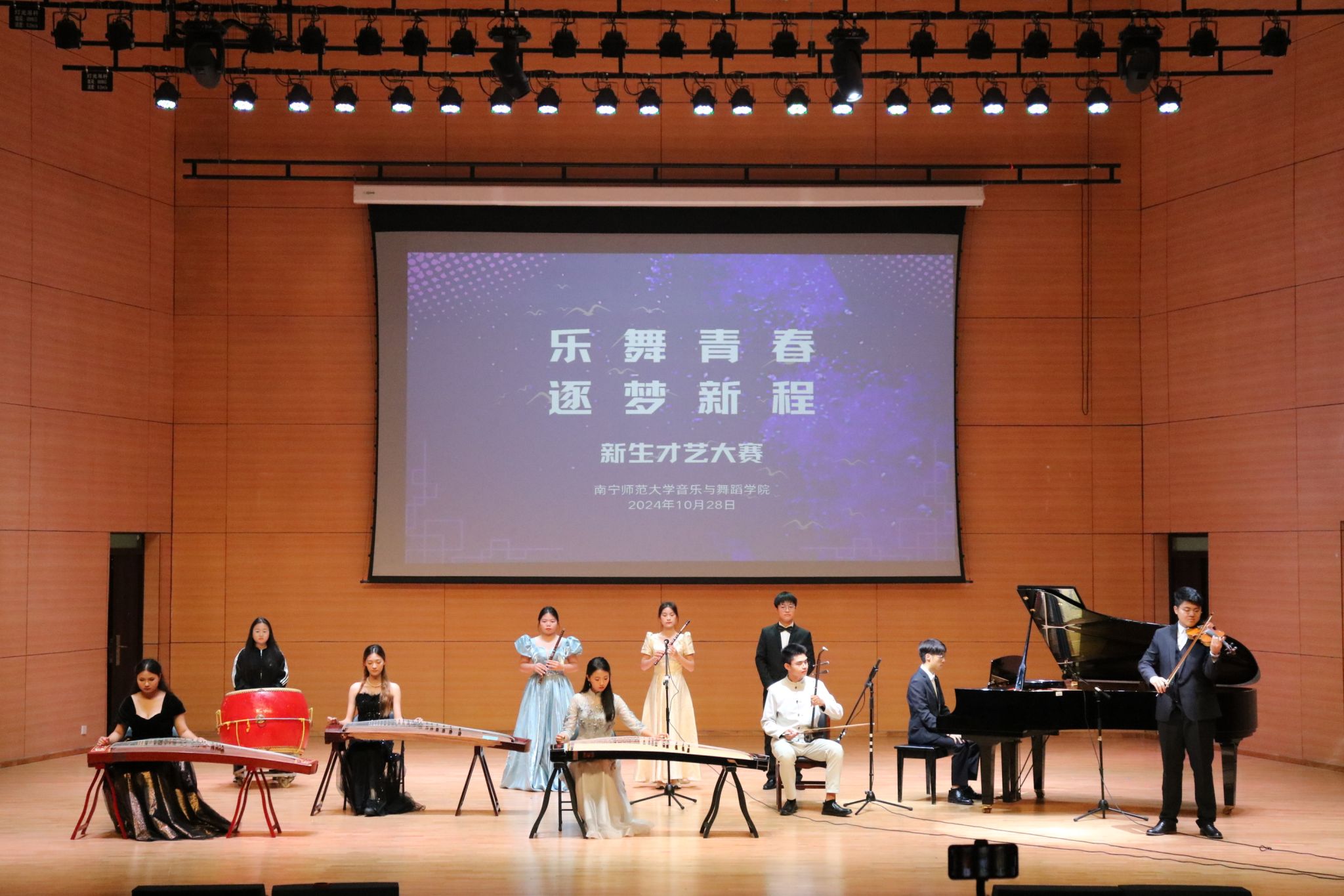2024年10月28日,必赢3003no1线路检测中心在音舞楼小音乐厅成功举办“乐舞青春,逐梦新程”新生才艺大赛,活动现场热闹非凡,吸引了众多师生驻足观看。