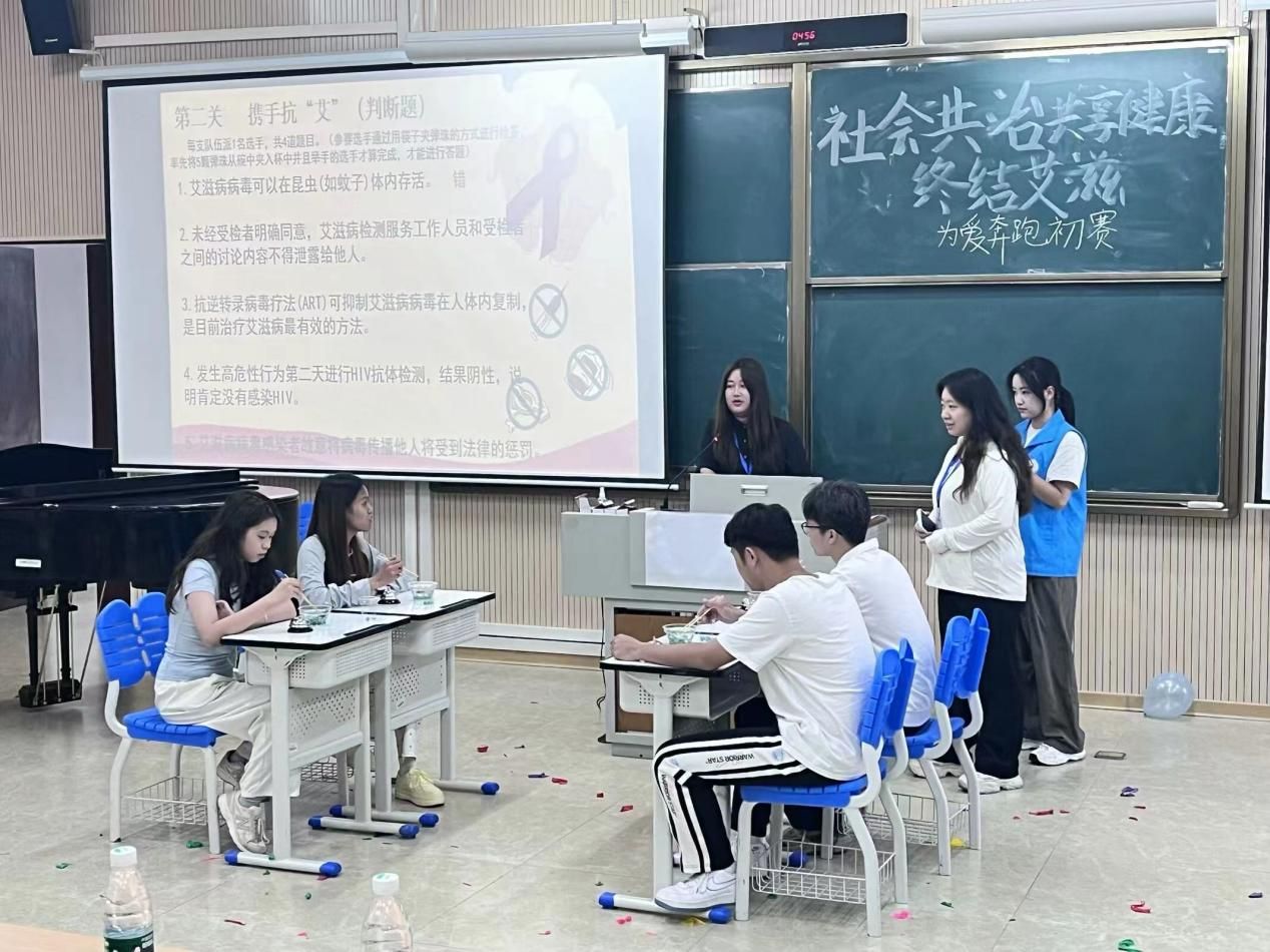 大会以青年志愿者协会秘书处副秘书长杨璐瑶发言开始,为大家普及了艾滋的相关知识。首先,第一关是“艾”冲锋的填空题作答,通过双脚将气球踩破来进行抢答,引导大家对艾滋病有一个全面的认识和较为深刻的了解。第二关是携手抗“艾”的判断题作答,参赛选手通过用筷子夹弹珠的方式进行抢答,呼吁大家共同建立起控制艾滋病的决心。第三关是青春防“艾”选择题作答,答题过程中可使大家更重视了艾滋的预防。第四关是知爱止“艾”的多选题作答,通过这关呼吁大家要爱护自己的身体,倡导健康的生活方式。