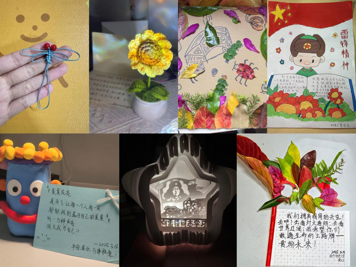 活动中,志愿者们用实际行动践行雷锋精神,精心设计手工制作项目,如缝制布偶,向日葵等,志愿者们将手工制品精心包装,附上一张张手写的祝福卡片,并将这些充满心意作品送给志愿服务基地小学的小朋友们,鼓励他们努力学习、奋发成才。