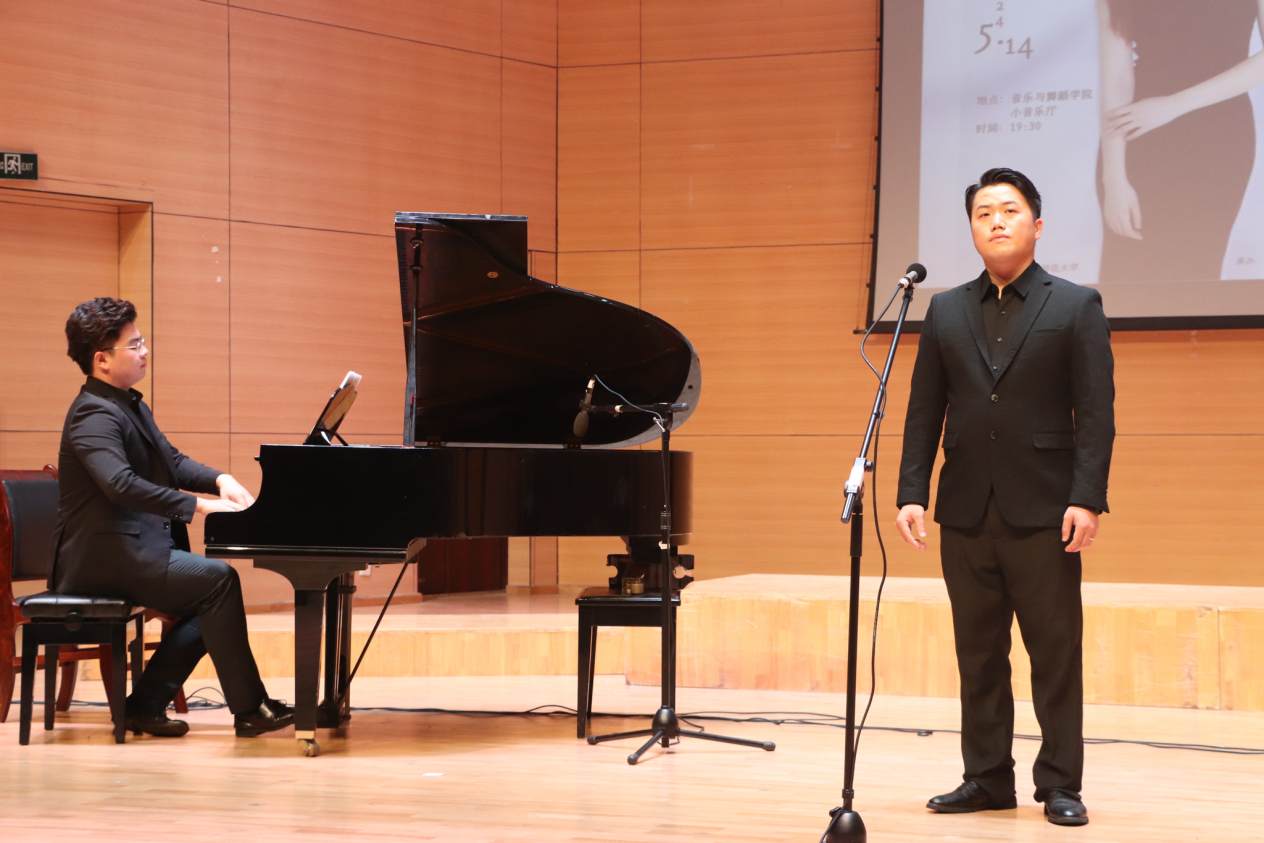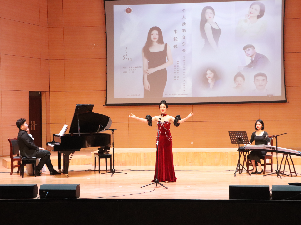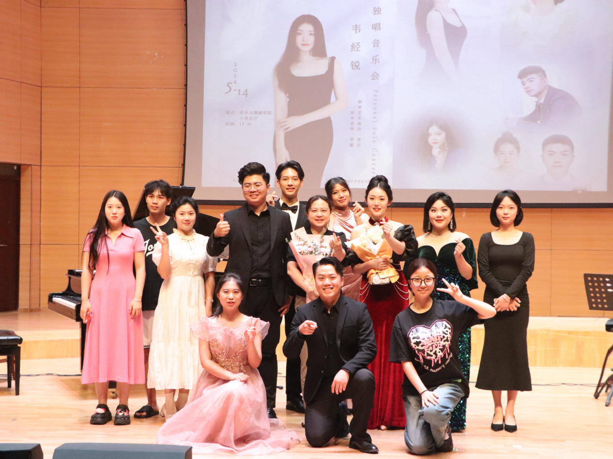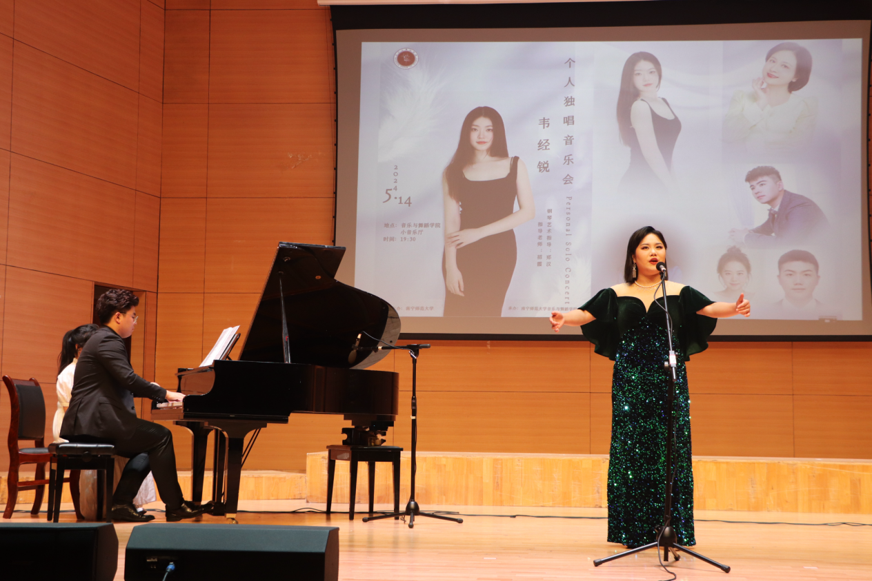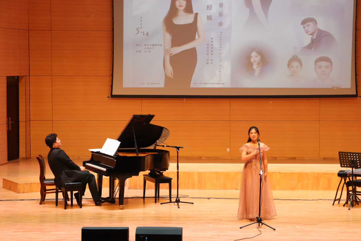 为进一步检验同学们的专业水平与实践能力,丰富校园生活,营造良好的专业学习氛围。5月14日晚上19:30,招霞老师—2021级声乐专业学生韦经锐个人独唱音乐会在音舞楼音乐厅成功举办,特邀优秀学生2022级本科生卢启彬、2021级本科生张紫艳、2023级硕士研究生宋巧玲进行演唱展示。